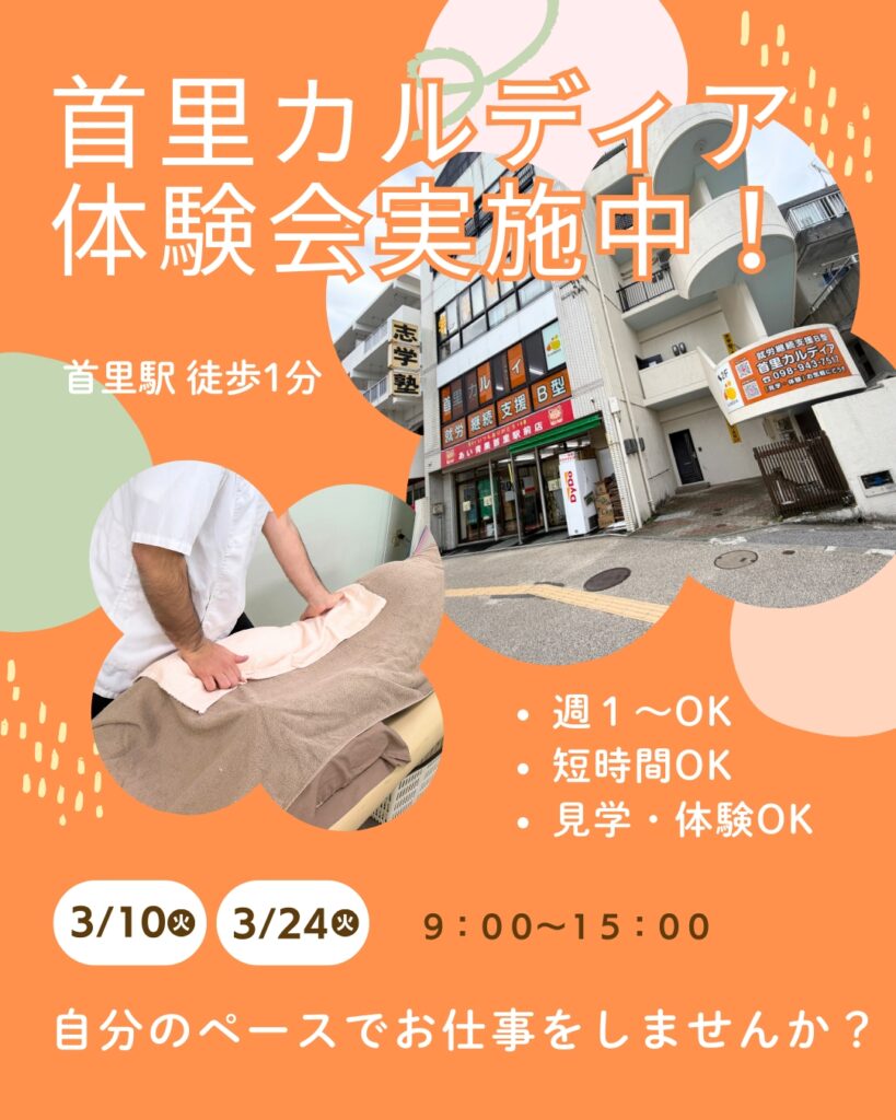 沖縄県那覇市首里にある就労継続支援B型事業所「首里カルディア(KARDIA)」は、整体・リラクゼーションとITスキルの両方を学べるユニークな福祉サービス事業所です。現在、無料体験会を実施中!障がいをお持ちの方や、支援を必要とされている方が、安心して自分らしく働く力を育める環境が整っています。